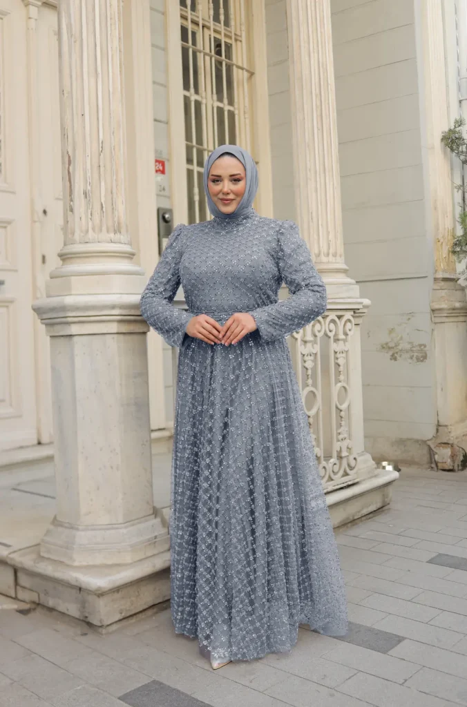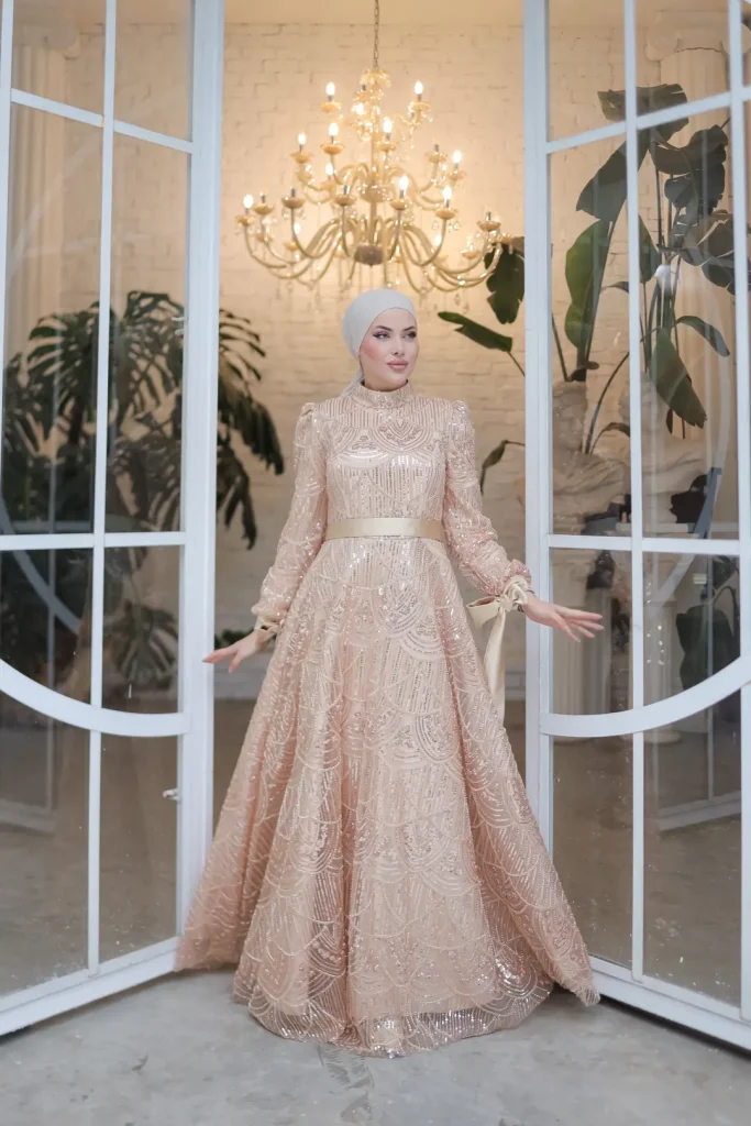 Boncuk İşlemeli Kolu Bağlamalı Abiye