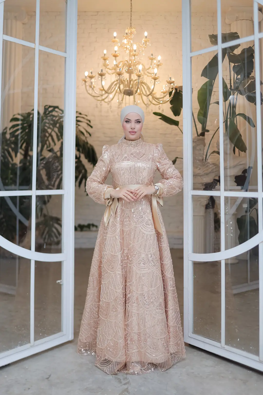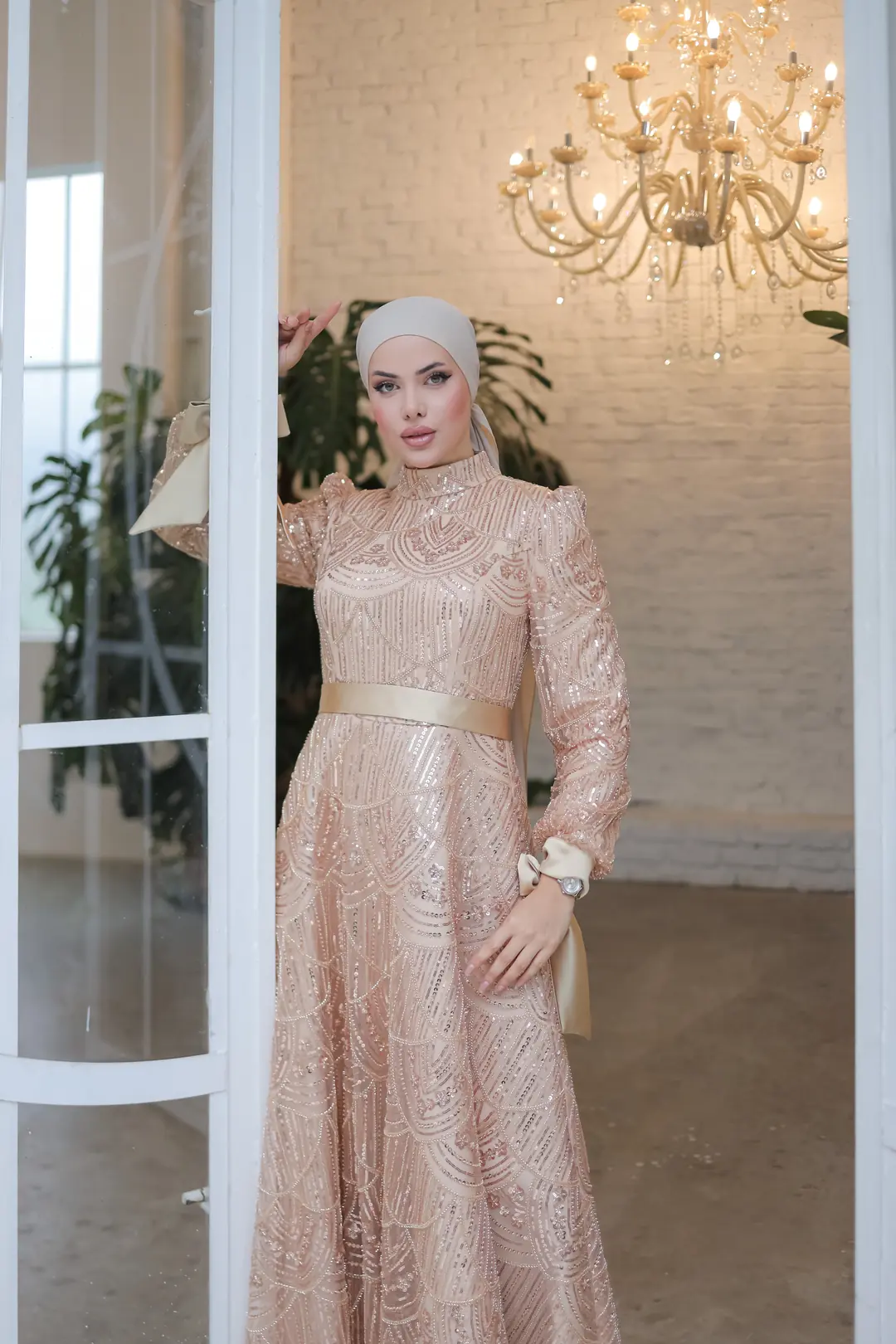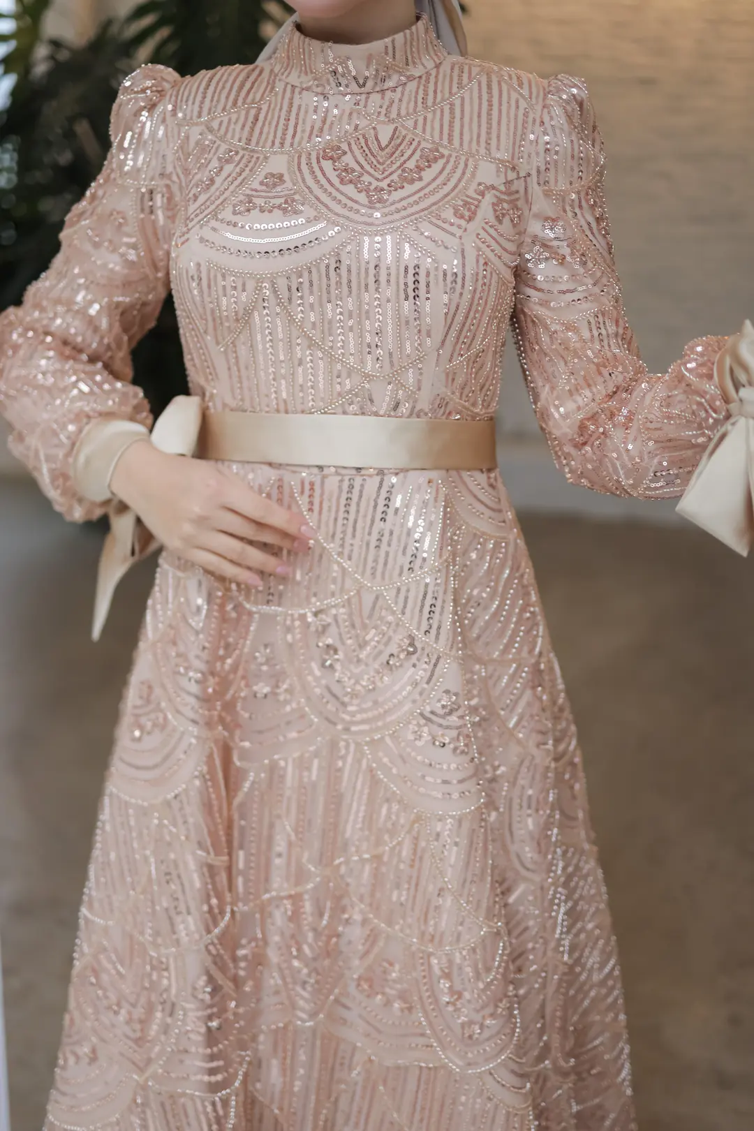 Boncuk İşlemeli Kolu Bağlamalı Abiye
