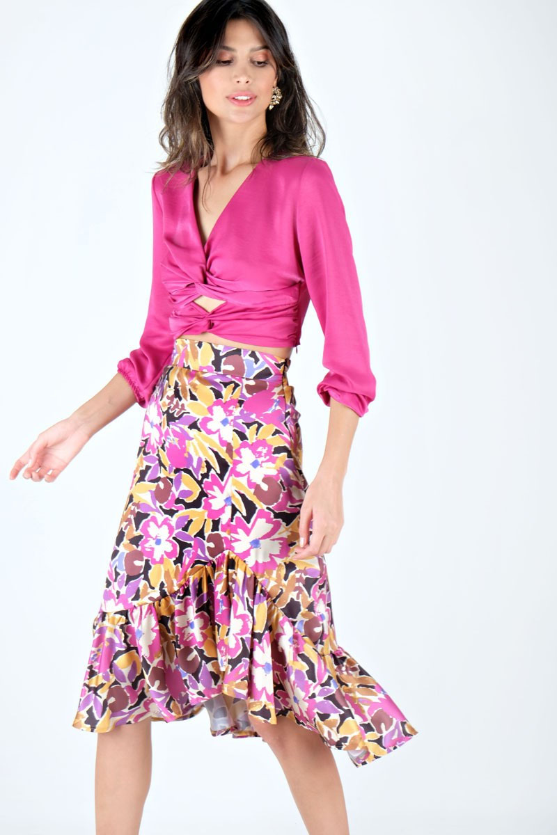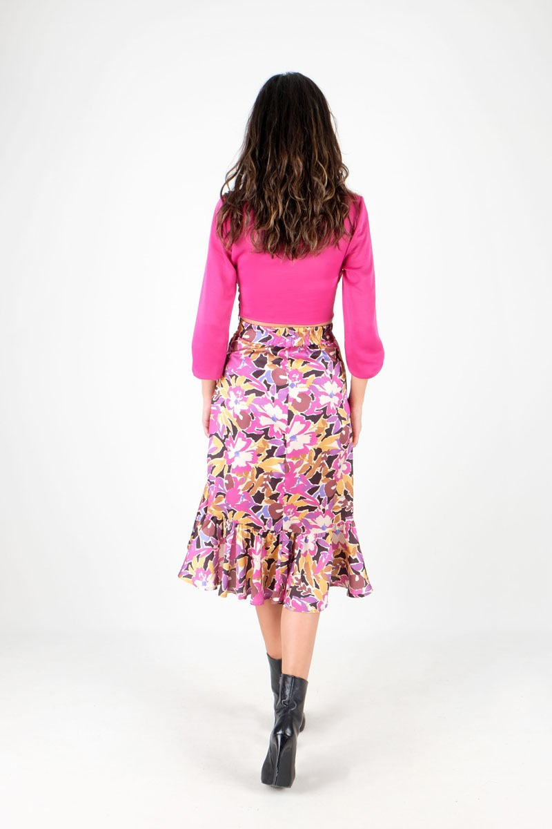 Lena Fırfırlı Asimetrik Etek Fuşya
